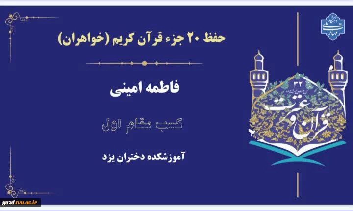 امتیاز دهید : کسب مقام اول خانم فاطمه امینی در سی و دومین جشنواره فرهنگی و هنری دانشگاه ملی مهارد در شهر مقدس مشهد 2 یکشنبه 23 شهریور 1404 ساعت 11:33